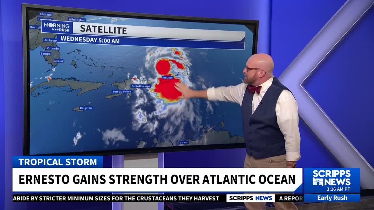 Hurricane Ernesto gained some strength in the Atlantic Wednesday night, on track to become a major hurricane as early as Friday.